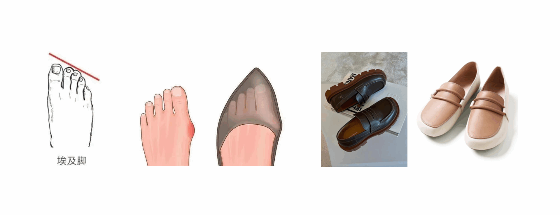 所以,如果处于成长发育的埃及脚孩子,最好穿方头鞋和斜头鞋,让孩子的脚充分舒展。